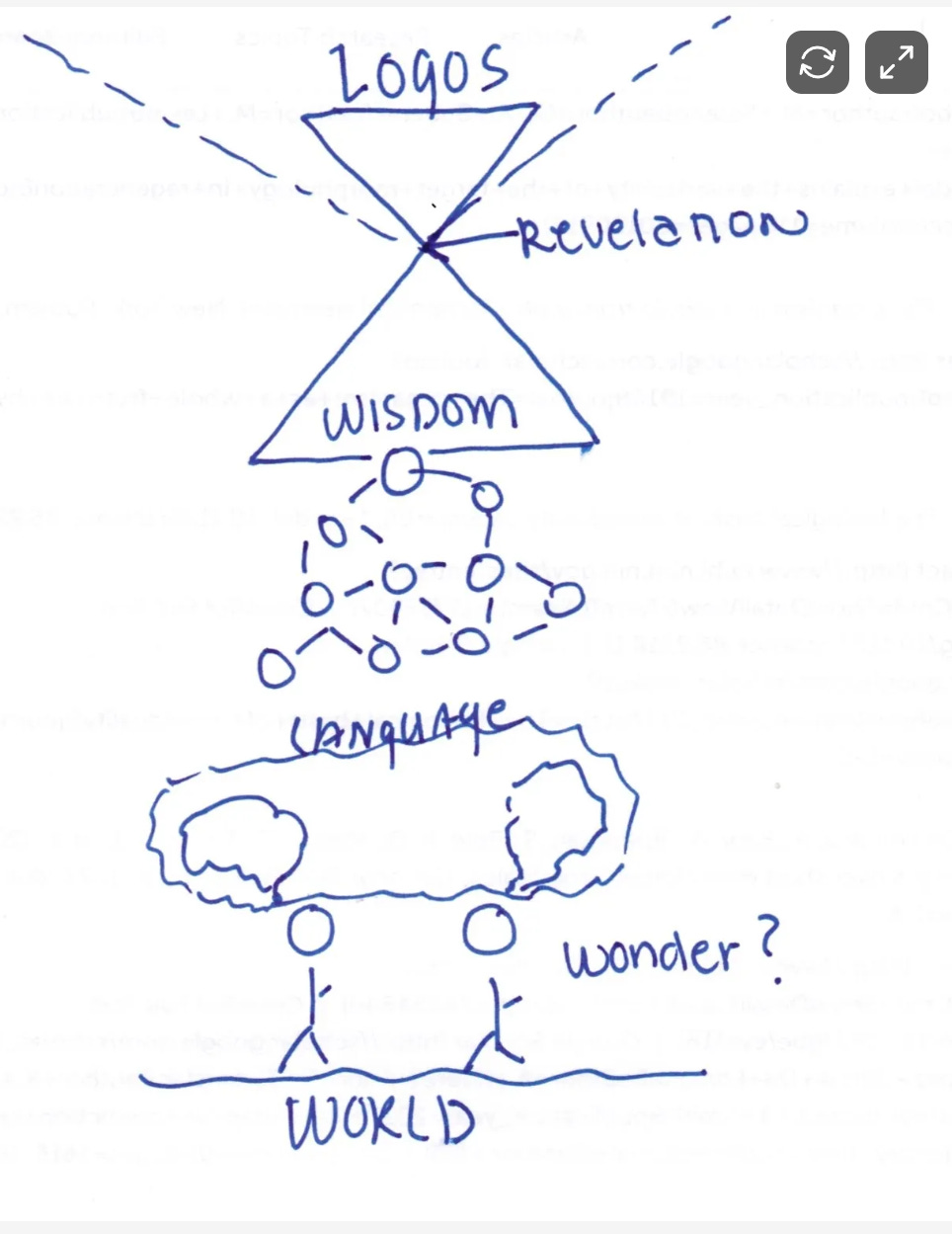 Here the world is not the dead terminus of a descending chain. It is the living middle. Human beings are situated around and within it, language appears as distributed local formations around agents, and revelation is not simply dropped in from above but occurs through participatory encounter. Wonder is not below language as a vague afterthought; it is the opening condition of relation. Wisdom is not a storehouse of propositions descending from a transcendent logos, but the deepened settlement of lived contact.
